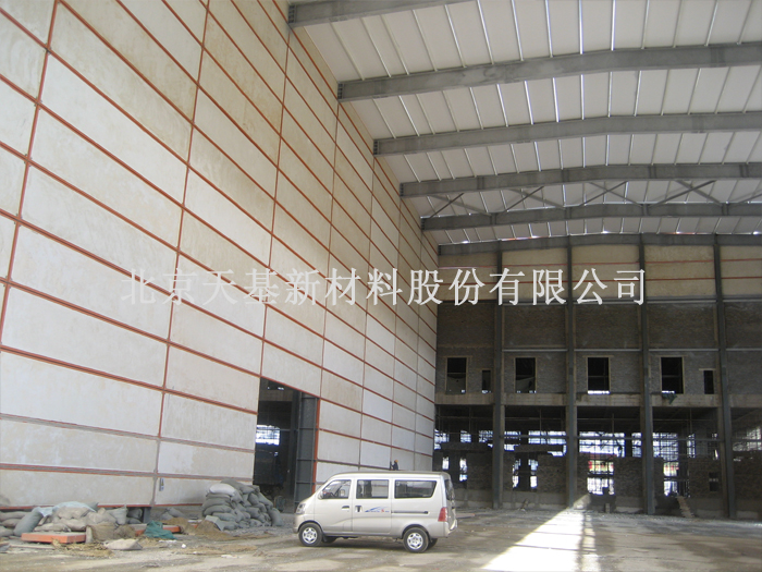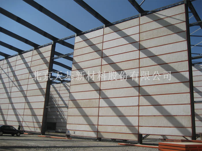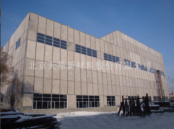 北京天基新材料股份有限公司研發(fā)的輕型外墻板,具有輕質(zhì)、承重、保溫隔熱、隔聲、耐火、泄壓及使用壽命等同國家規(guī)范要求等優(yōu)點(diǎn)。